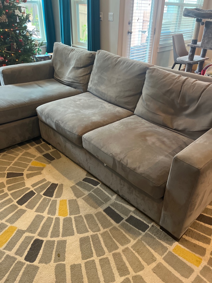 In Harris Ridge, gave a thorough clean to the sectional sofa. Removed dirt and refreshed the upholstery.