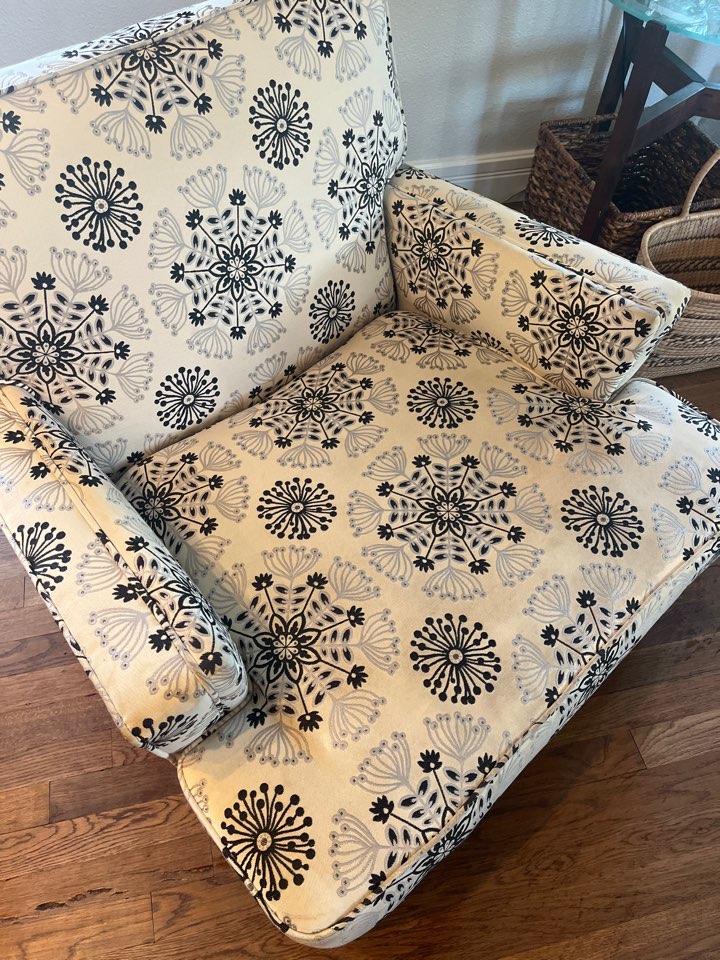 Austin, TX - Professional steam cleaning of a fabric chair in the Crestview neighborhood of Austin, TX. Deep extraction removed stains, odors, and embedded soil, like- new condition.